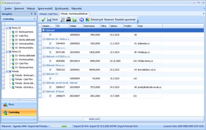 - Zaslání upomínek klepnutím na jedno tlačítko.